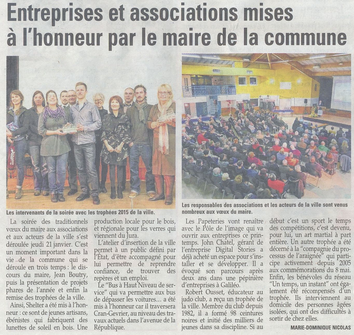 Janvier 2015 - Robert Ousset reçoit le trophée de la ville de Cran Gevrier lors de la soirée des voeux du maire le 21 janvier 2015. Son travail mené au club depuis 1982 est largement reconnu.