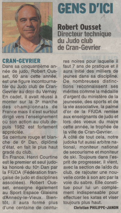 Paru le 15 juin 2015 dans le Dauphiné Libéré - un portrait sur Robert Ousset